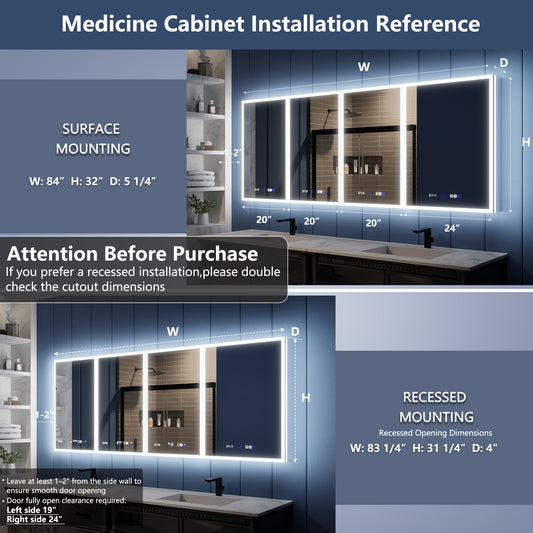 Illusion 84" x 32" LED Lighted Medicine Cabinet with Magnifiers Front and Back Light