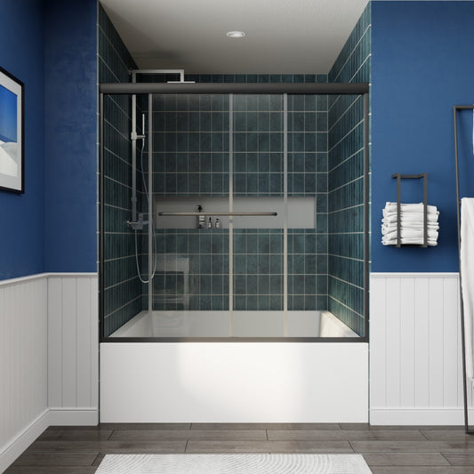 Glide-B Allsumhome 56-60" Semi-Frameless Double Sliding Tub Door,Bypass Bathtub Shower Tempered Glass Door,Explosion-Proof Film,Matte Black