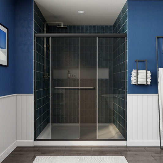 Glide Semi-Frameless Shower Door 56-60 in. W x 72 in. H Bypass Sliding Shower Enclosure,Matte Black,Double Sliding Glass Bathroom Doors