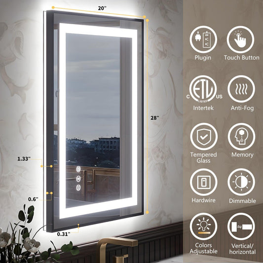 Apex-B 20x28in Vanity Mirror with Lights for Bathroom Wall,Framed LED Bathroom Mirror,Anti-Fog,Shatter-Proof,ETL Listed