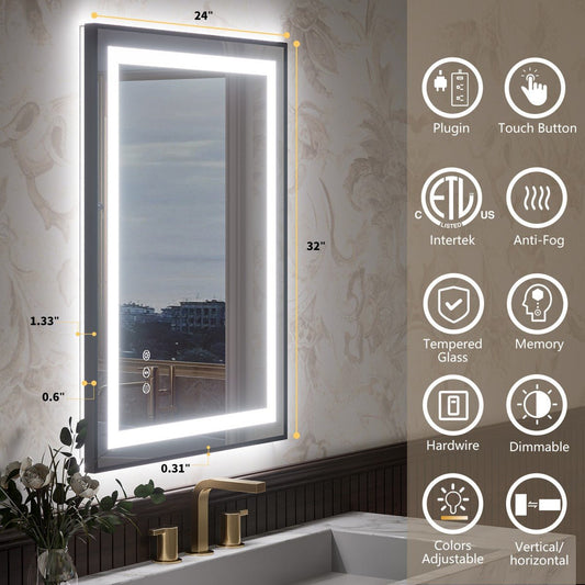 Apex-B 32x24in Vanity Mirror with Lights for Bathroom Wall,Framed LED Bathroom Mirror,Anti-Fog,Shatter-Proof,ETL Listed