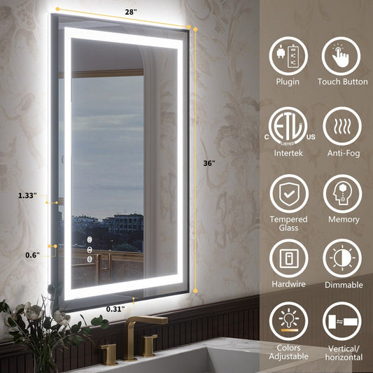 Apex-B 36x28in Vanity Mirror with Lights for Bathroom Wall,Framed LED Bathroom Mirror,Anti-Fog,Shatter-Proof,ETL Listed