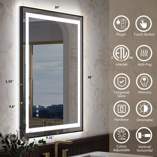 Apex-B 36x30in Vanity Mirror with Lights for Bathroom Wall,Framed LED Bathroom Mirror,Anti-Fog,Shatter-Proof,ETL Listed
