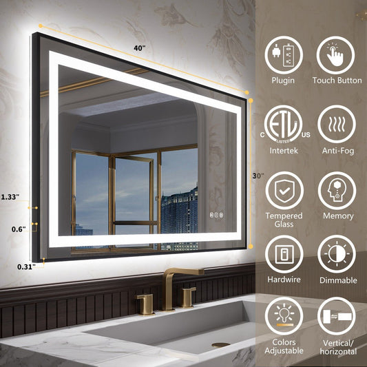 Apex-B 40x24in Vanity Mirror with Lights for Bathroom Wall,Framed LED Bathroom Mirror,Anti-Fog,Shatter-Proof,ETL Listed