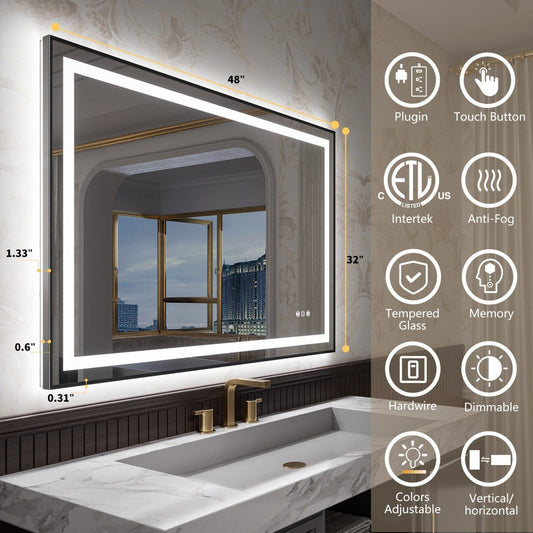 Apex-B 48x32in Vanity Mirror with Lights for Bathroom Wall,Framed LED Bathroom Mirror,Anti-Fog,Shatter-Proof,ETL Listed