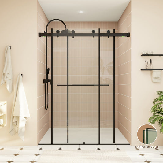 Lock Adjustable 56-60"W x 74"H Sliding Glass Shower Door with 8mm Clear Tempered Glass,Stainless Steel Hardware Black,Rectangle Shower Door