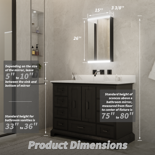 Apex-Noir 48"x32" Framed LED Lighted Bathroom Mirror