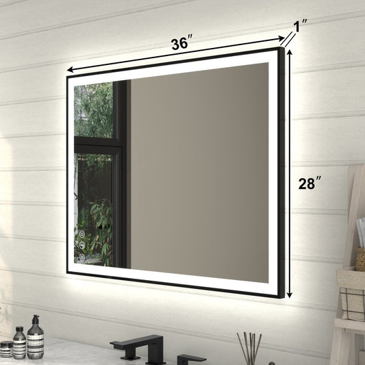 Apex-Noir 28"x36" Framed LED Lighted Bathroom Mirror