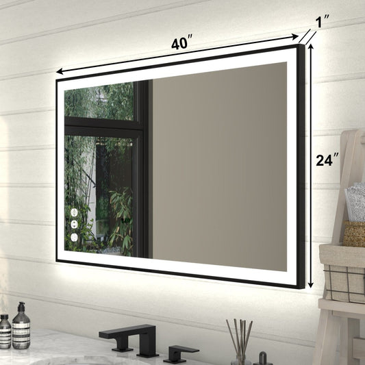 Apex-Noir 40"x24" Framed LED Lighted Bathroom Mirror