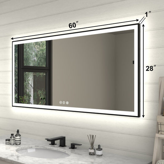 Apex-Noir 60"x28" Framed LED Lighted Bathroom Mirror