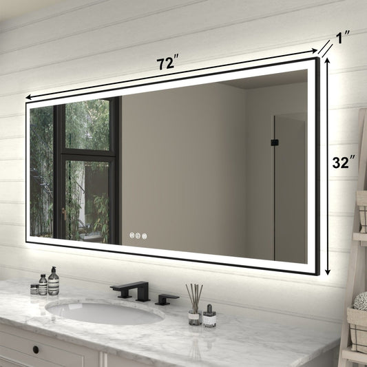 Linea 72" W x 32" H LED Heated Bathroom Mirror,Anti Fog,Dimmable,Front-Lighted and Backlit, Tempered Glass