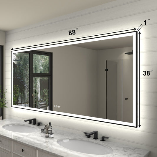 Apex 88" W x 38" H LED Bathroom Large Light Led Mirror,Anti Fog,Dimmable,Dual Lighting Mode,Tempered Glass