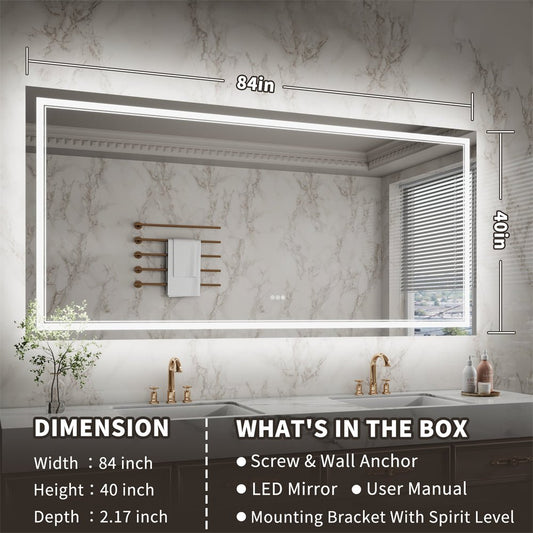 Linea 84" W x 40" H LED Heated Bathroom Mirror,Anti Fog,Dimmable,Front-Lighted and Backlit, Tempered Glass