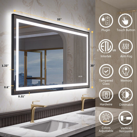 Apex-B 55x30in Vanity Mirror with Lights for Bathroom Wall,Framed LED Bathroom Mirror,Anti-Fog,Shatter-Proof,ETL Listed