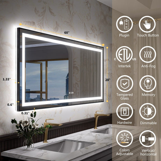 Apex-B 60x28in Vanity Mirror with Lights for Bathroom Wall,Framed LED Bathroom Mirror,Anti-Fog,Shatter-Proof,ETL Listed