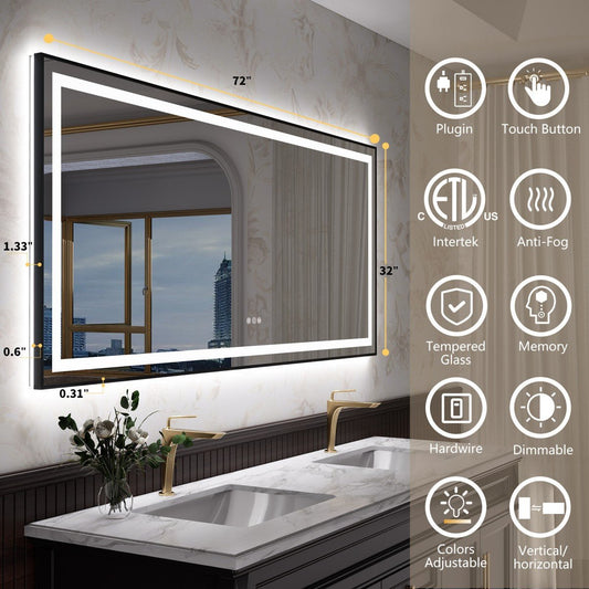 Apex-B 72x32in Vanity Mirror with Lights for Bathroom Wall,Framed LED Bathroom Mirror,Anti-Fog,Shatter-Proof,ETL Listed