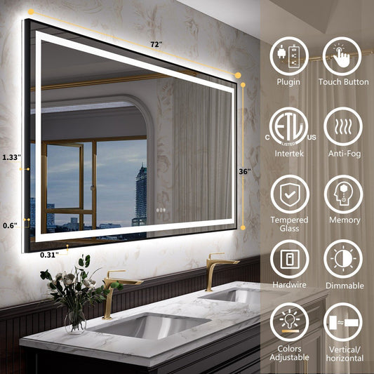 Apex-B 72x36in Vanity Mirror with Lights for Bathroom Wall,Framed LED Bathroom Mirror,Anti-Fog,Shatter-Proof,ETL Listed