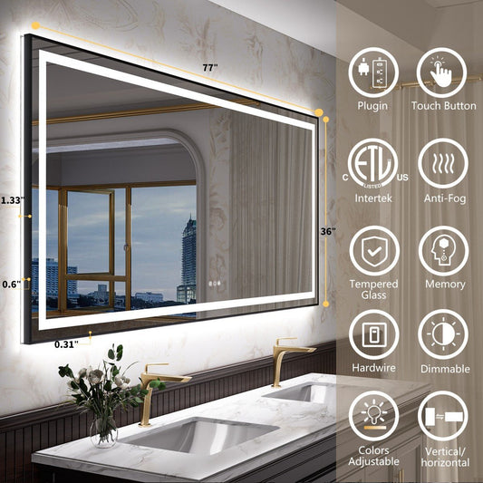 Apex-B 77x36in Vanity Mirror with Lights for Bathroom Wall,Framed LED Bathroom Mirror,Anti-Fog,Shatter-Proof,ETL Listed