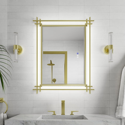 Lumina 30" W x 36" H LED Lighted Bathroom Mirror,High Illuminate, Inner & Outer Lighting,Anti-Fog, Dimmable, Golden with Rounded Corners