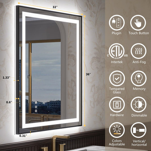 Apex-B 32x24in Vanity Mirror with Lights for Bathroom Wall,Framed LED Bathroom Mirror,Anti-Fog,Shatter-Proof,ETL Listed