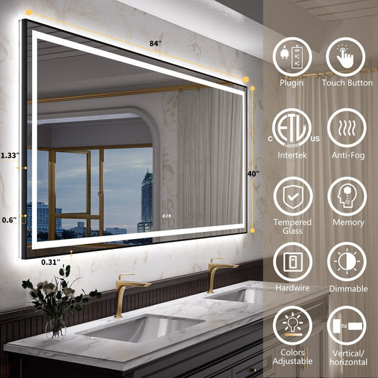 Apex-B 84x40in Vanity Mirror with Lights for Bathroom Wall,Framed LED Bathroom Mirror,Anti-Fog,Shatter-Proof,ETL Listed
