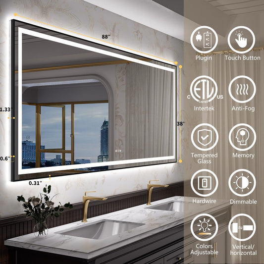 Apex-B 88x38in Vanity Mirror with Lights for Bathroom Wall,Framed LED Bathroom Mirror,Anti-Fog,Shatter-Proof,ETL Listed