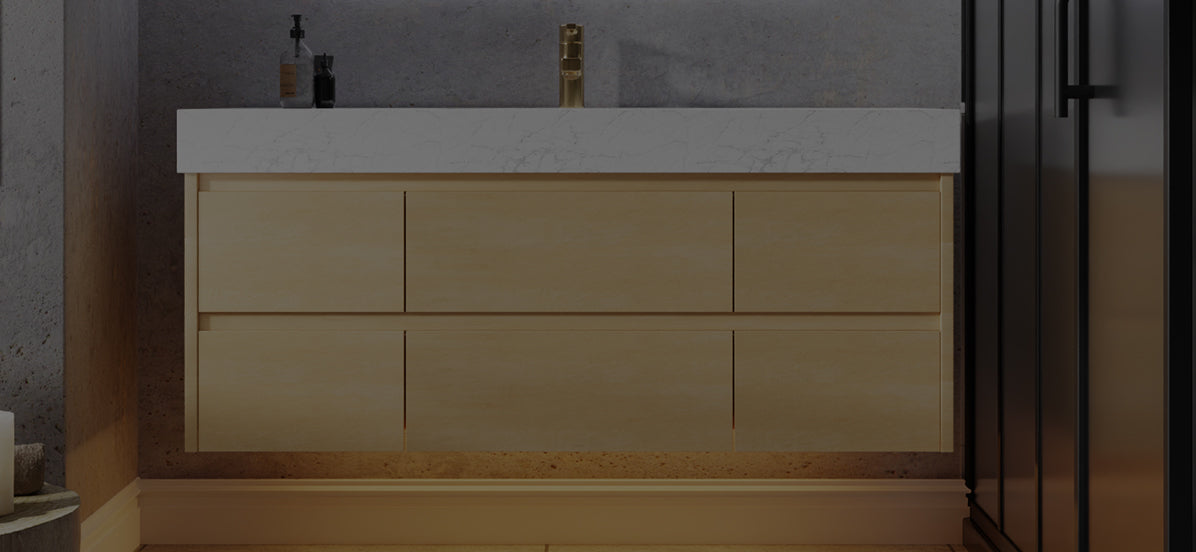 Sleek 60" (Only VanityBase) Modern Floating Maple wood Bathroom Vanity Cabinet with with Lights and Stone Slab Countertop