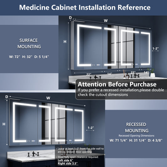 Boost-M2 48" W x 32" H LED Lighted Bathroom Medicine Cabinet with Mirror Recessed or Surface led Medicine Cabinet