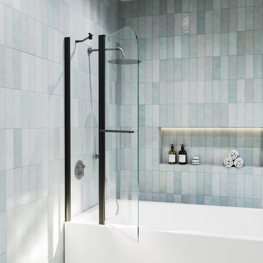 Serenity-S 33" x 58" Bathtub Screen Reeded Glass Shower Panel For Bathtub,Matte Black Finish,Reversible Installation,Semicircle