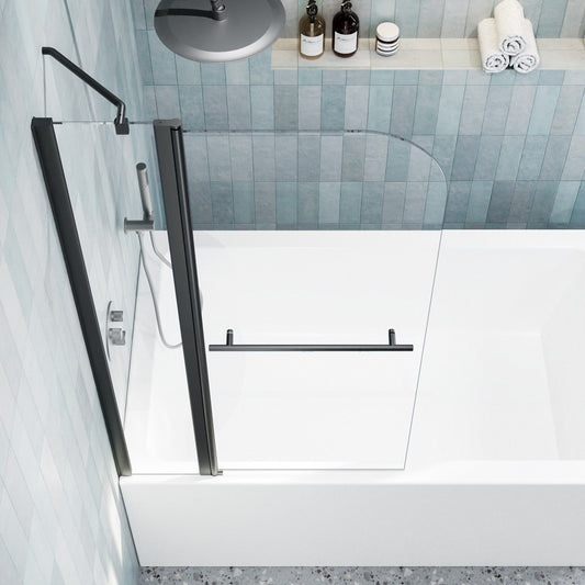 Classy-LB 35.2-36" x 58" Bathtub Screen Panel Pivot Swing Shower Door for Bathtub 180° Pivot 6mm Tempered Glass,Black