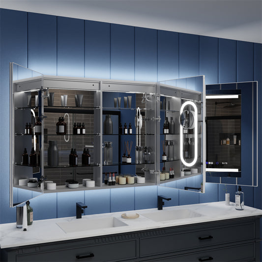 Illusion-B 54" x 36" LED Lighted Inset Mirrored Medicine Cabinet with Magnifiers Front and Back Light