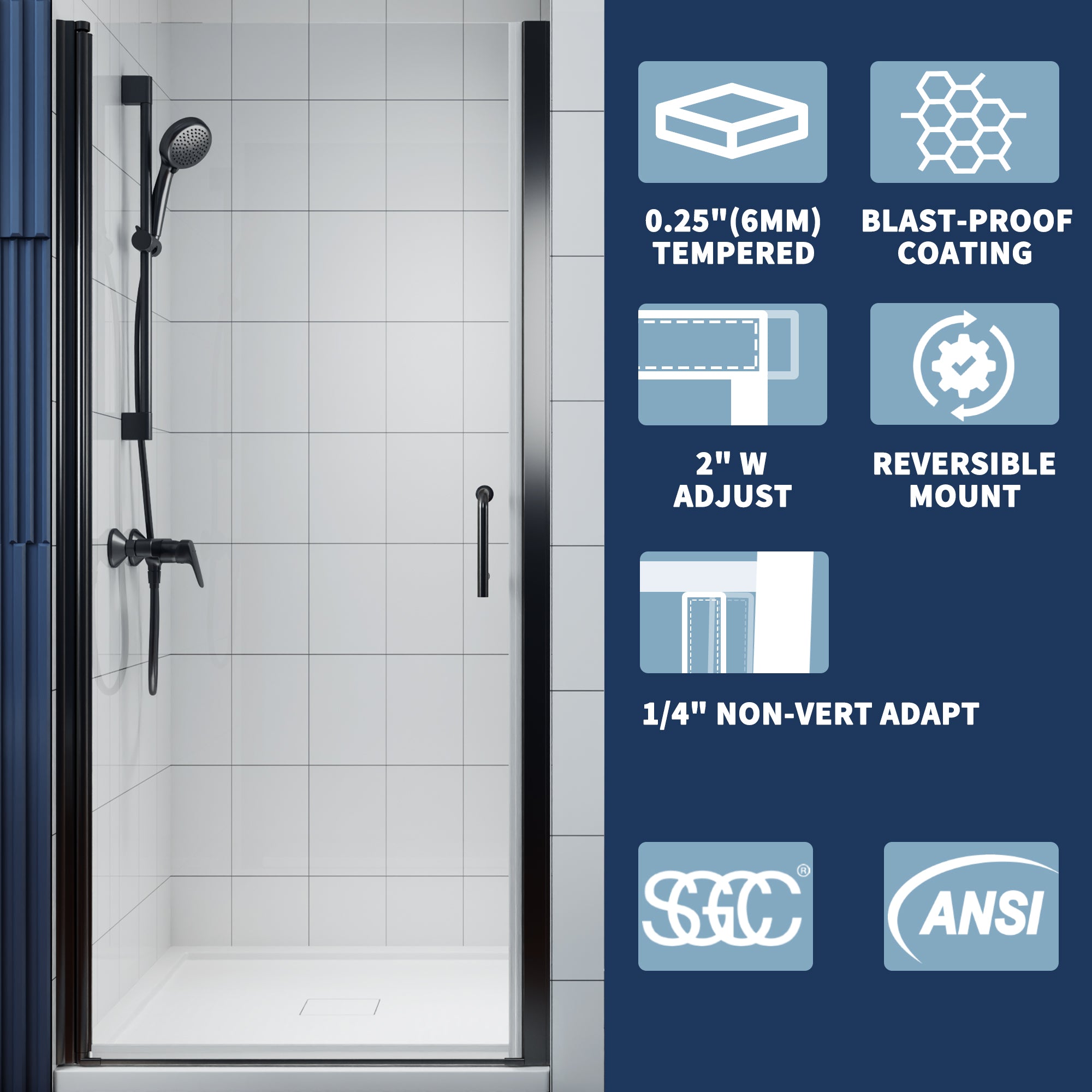 Classy 34-36" W x 72" H Pivot Semi-Frameless Shower Door Matte Black Install Glass Shower Door