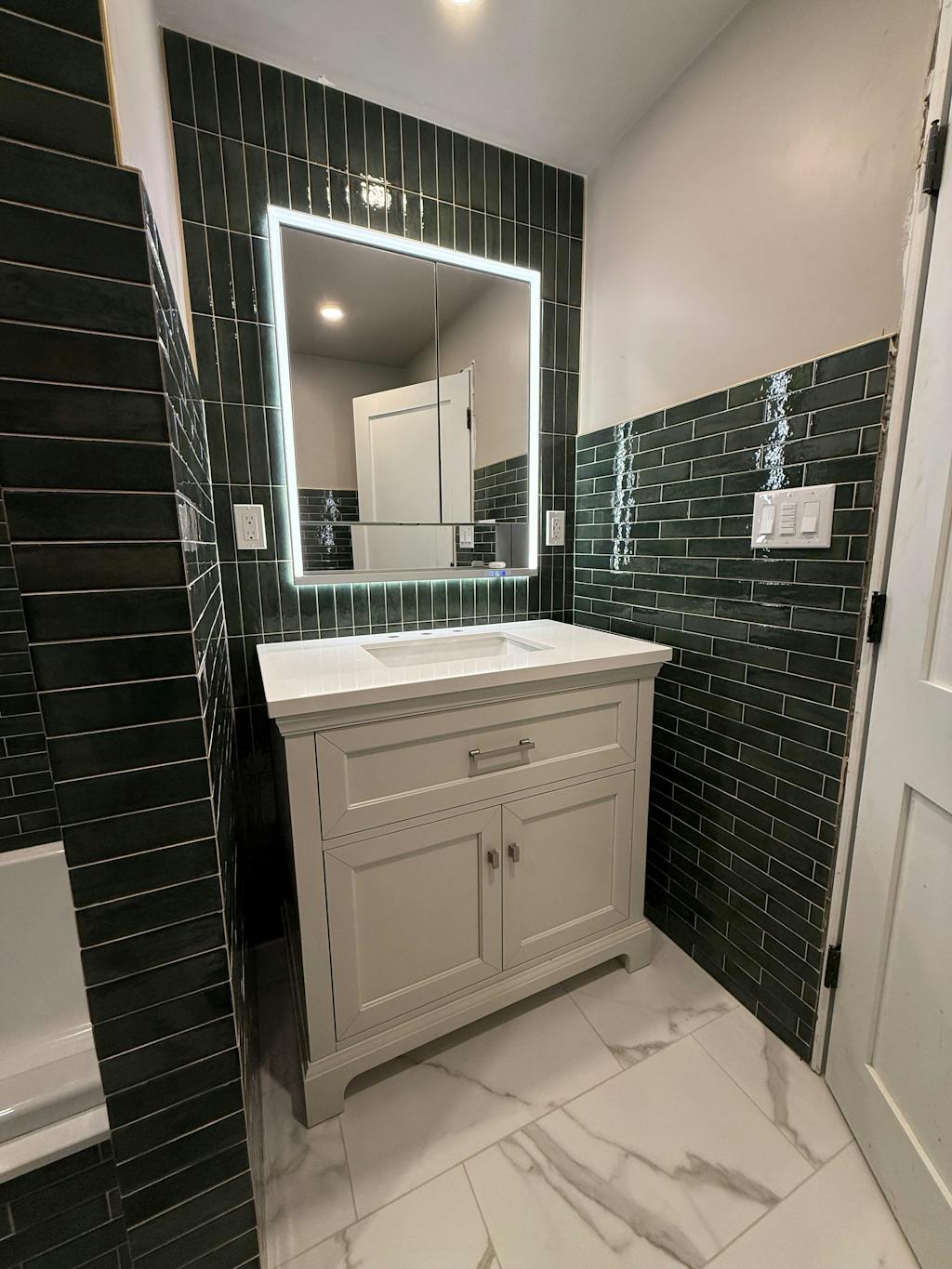 Thank you for your kind review of our Ample LED Lighted Chrome Medicine Cabinet! We're happy to hear that it has brightened up your bathroom and complemented your tile walls and shower. We appreciate your support and hope you continue to enjoy our product.