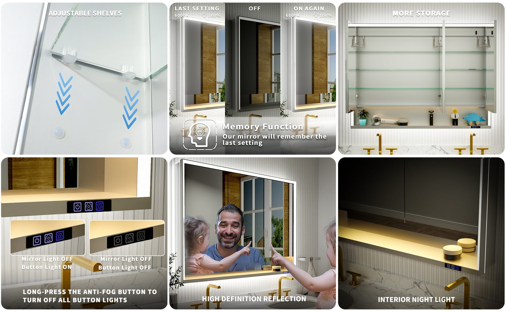 - Experience enhanced durability with our LED medicine cabinet, meticulously designed with a robust dual-layer structure that effectively resists warping and distortion over time.
