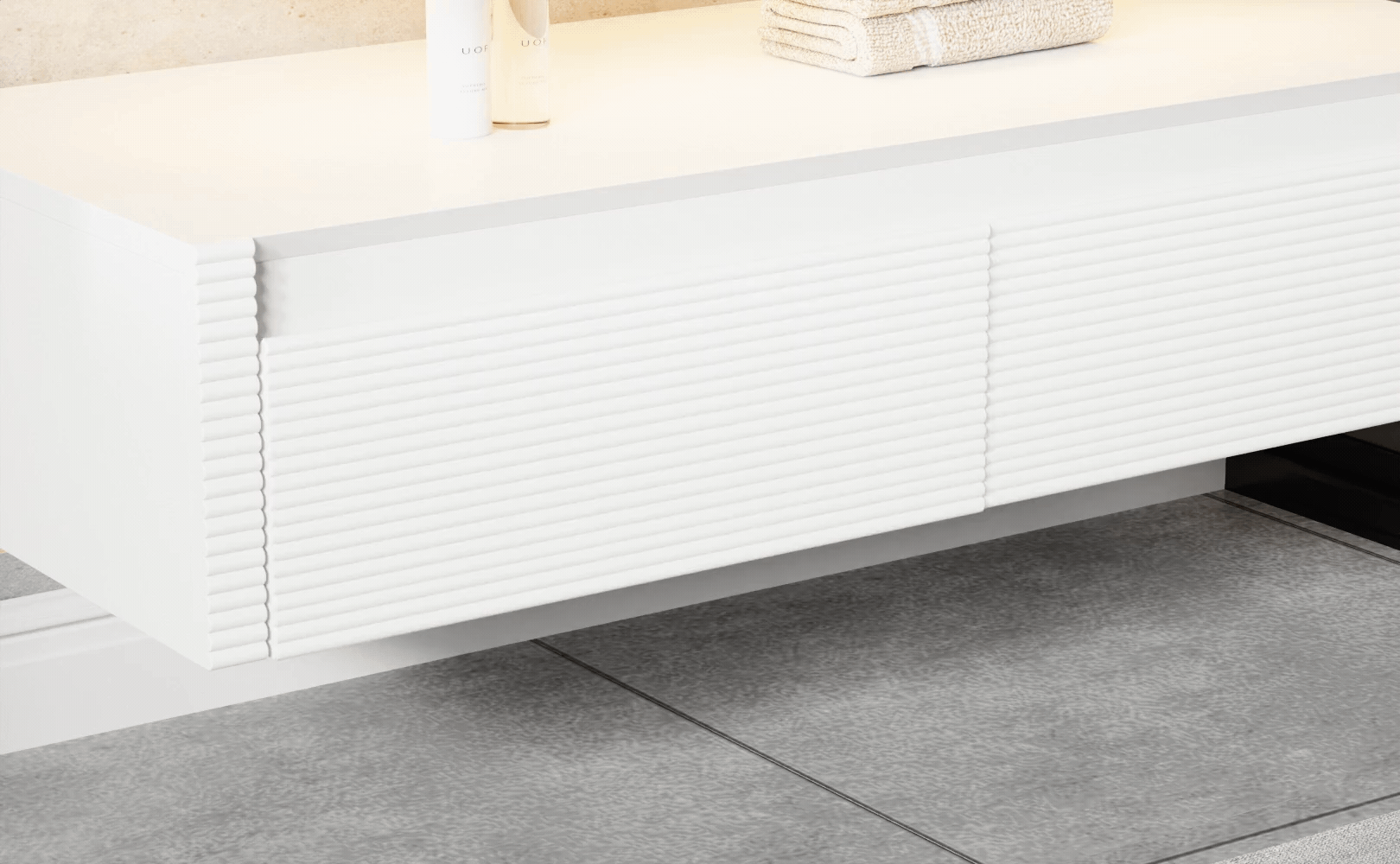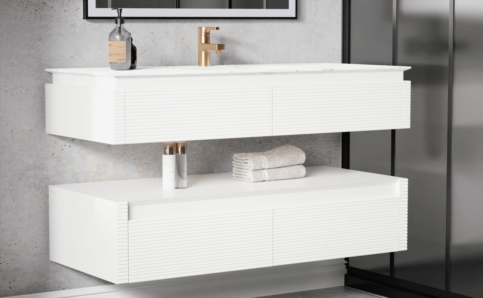 The Segeo Series is the epitome of balance in design. Inspired by the harmony of "Segment" and "Geo," the Segeo vanity showcases a segmented geometric pattern, combining art and function. The striated surface exudes luxurious geometric vibes, while its segmented structure enhances storage space, providing both order and beauty. More than just a functional storage solution, it’s a piece of art that elevates the visual appeal of any bathroom.