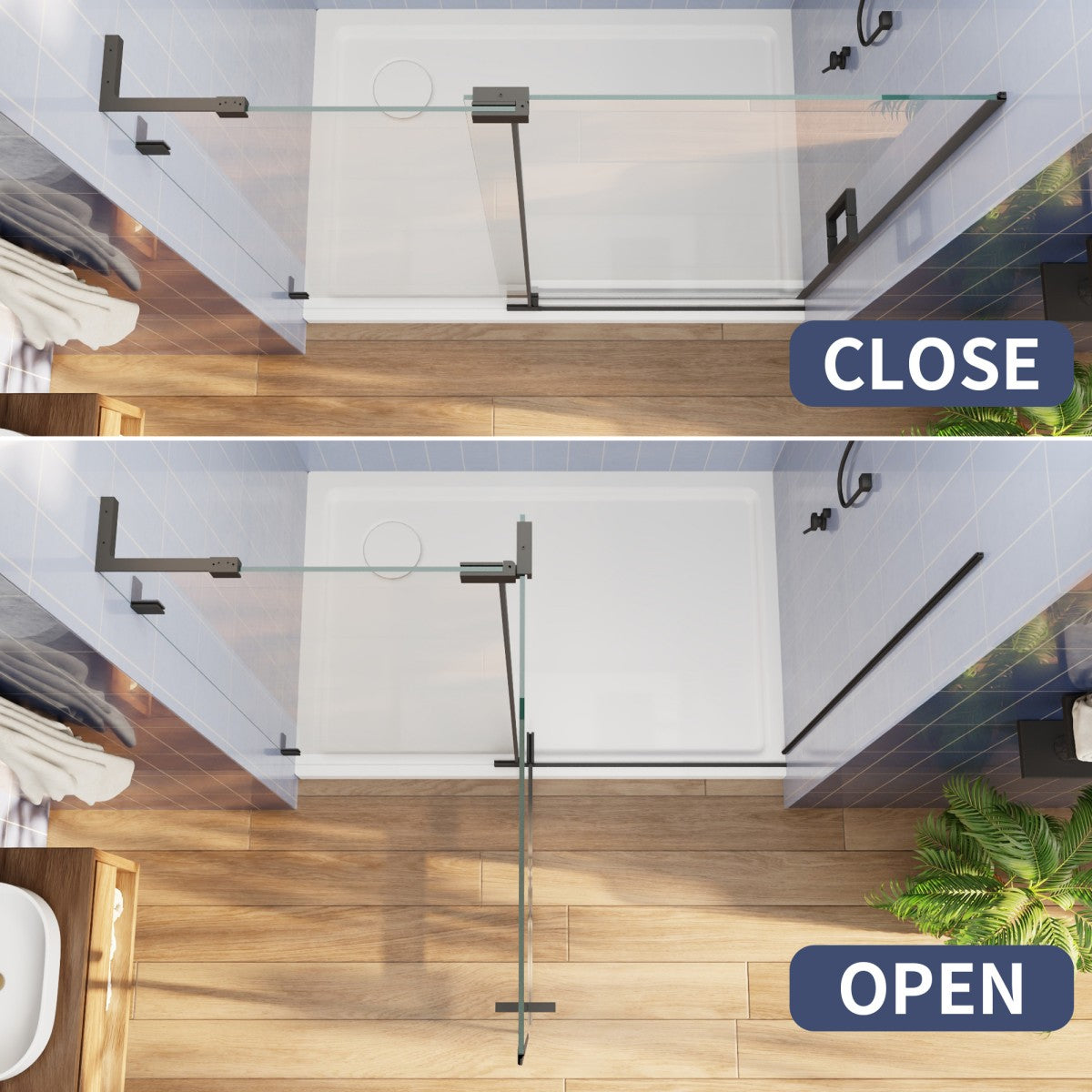 Flexi-L 50-54" W X 70" H Bathroom Glass Shower Doors,Semi-Frameless Matte Black,Tempered Glass Shower Door With Handle