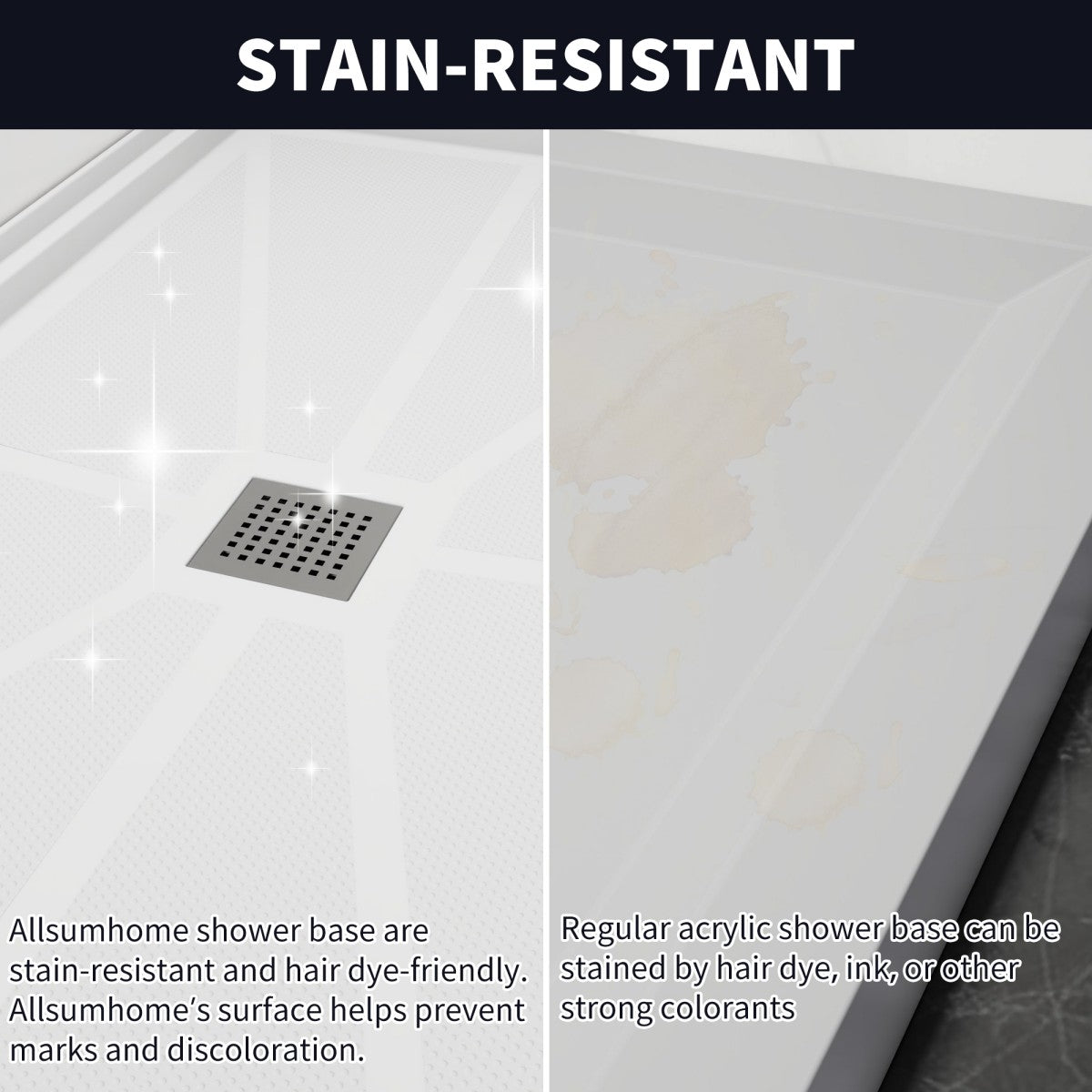 Pequod-M 48"x36" Premium Solid Surface Composite Shower Base,Non-Porous,Stain-Resistant,Long-Lasting