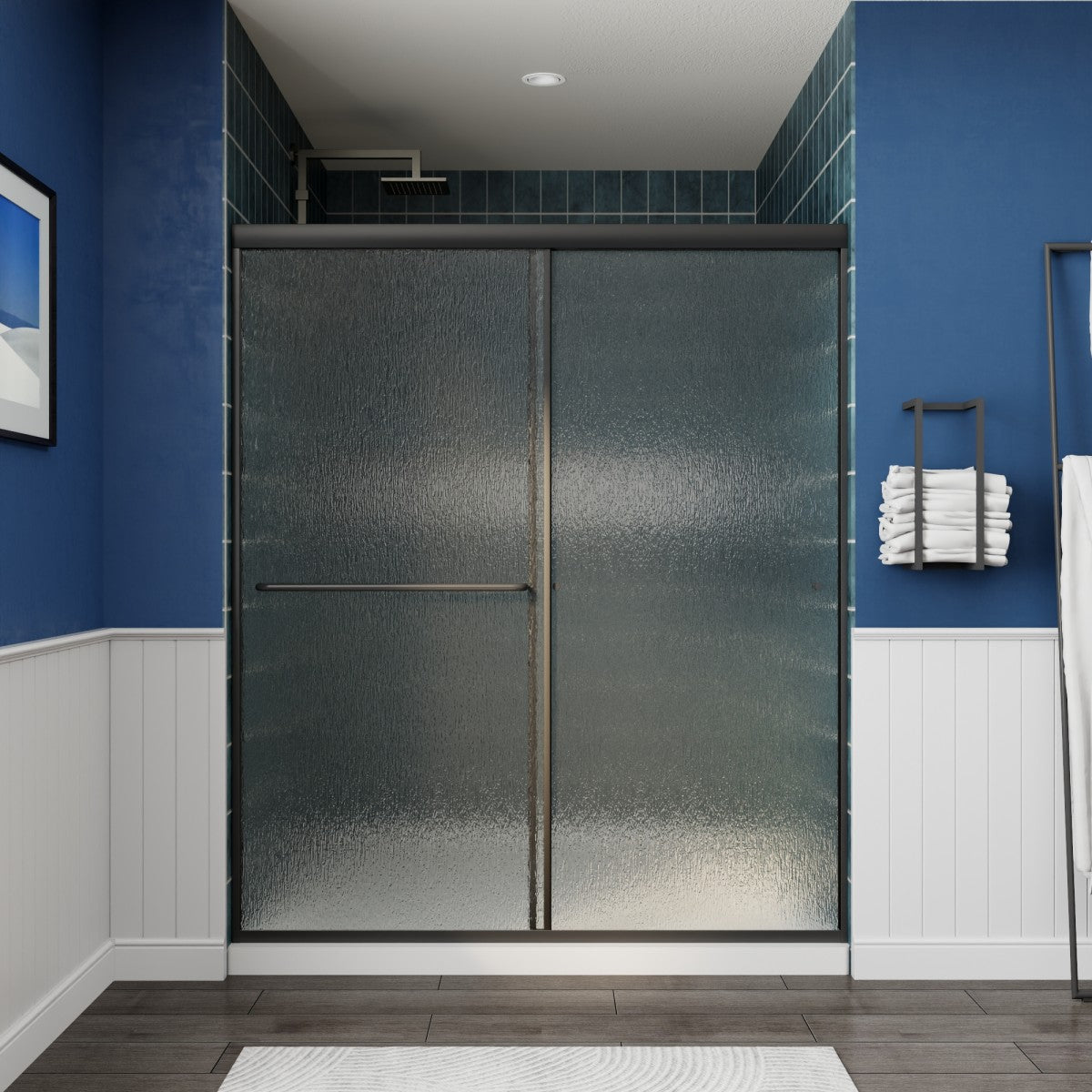 Glide-B Allsumhome 56-60" Semi-Frameless Double Sliding Tub Door,Bypass Bathtub Shower Tempered Glass Door,Explosion-Proof Film,Matte Black
