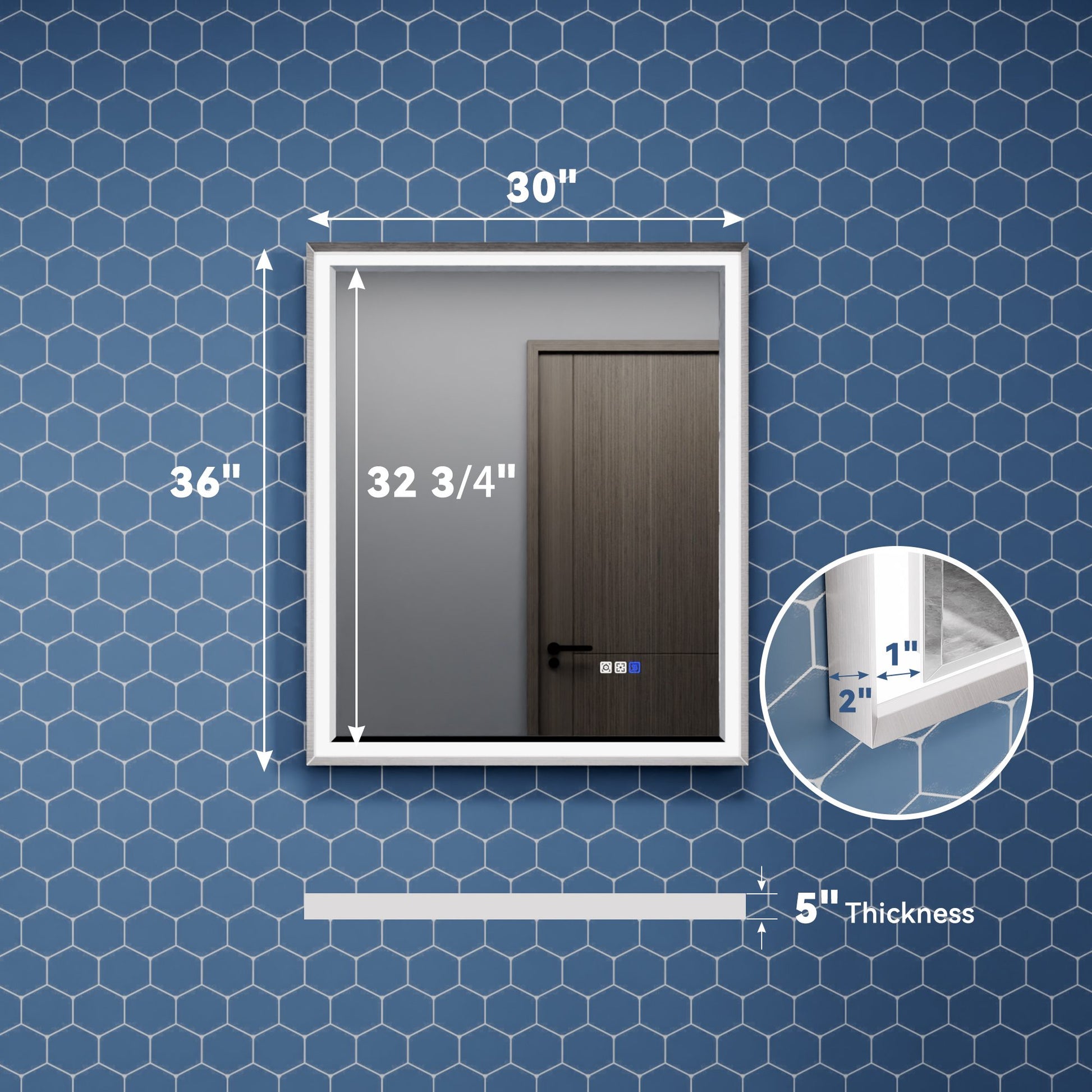 Verloar 30" W x 36" H Lighted Bathroom Mirror,Dimmable,Anti Fog,Front-Lit Illumination