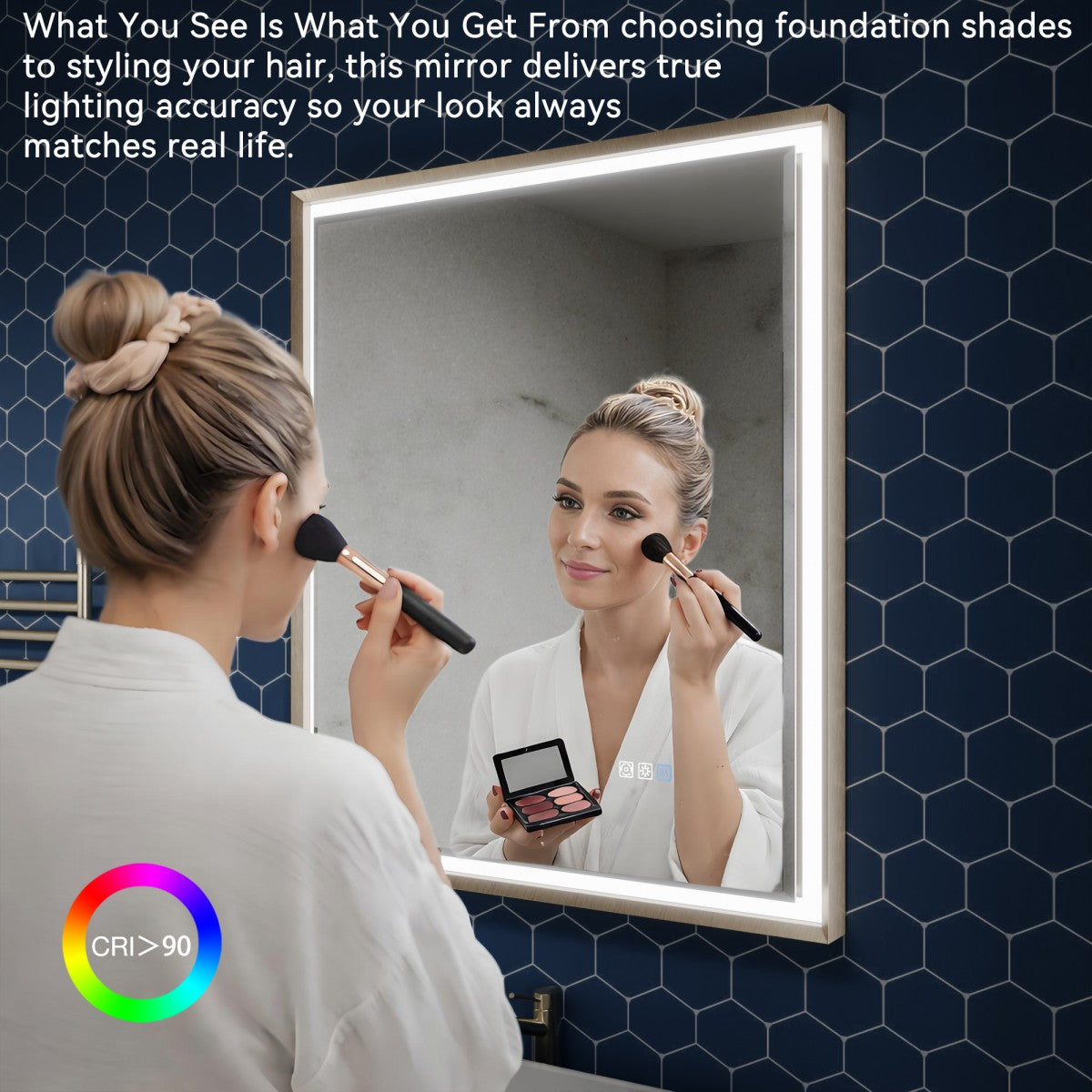Verloar 30" W x 36" H Framed Lighted Bathroom Mirror,Dimmable,Anti Fog,Front-Lit Illumination,Brushed Nickel