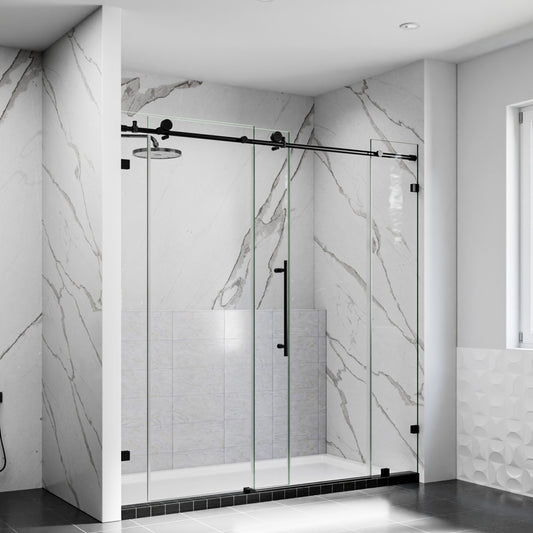Anchor-W Allsumhome Frameless Sliding Shower Door 72 in W x 74 in H,Matte Black,Frameless Shower Door with 5/16" (8mm) Clear Tempered Glass,Easy Clean