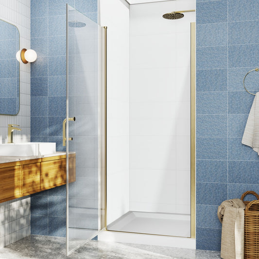 Valor 24"x72" Frameless Shower Door in Brush Gold,Water Repellent Glass with Seal Strip Parts and Handle,Glass Hinged Shower Door