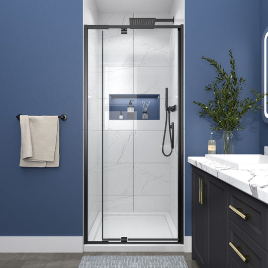 Classy 24-26" W x 72" H Clear Glass Pivot Shower Door,Black Install