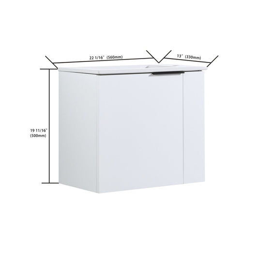 Allsumhome Modern Bathroom Vanity with Sink 22 Inch for Small Bathroom in White,Floating Bathroom Vanity with Soft Close Door