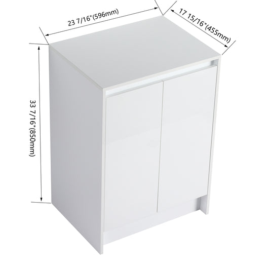 Allsumhome 24' freestanding Bathroom Storage Cabinet, 2-Soft Close Doors, Glossy White,(KD-Packing)