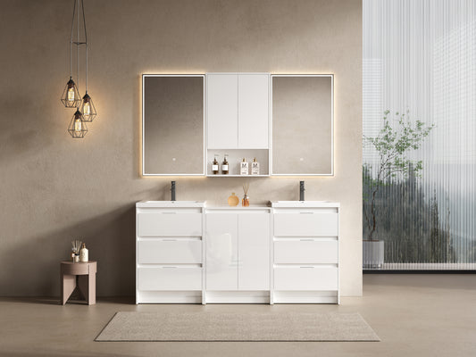 Allsumhome 72' Freestanding Bathroom Vanity with Resin Sink, 1-Storage Cabinet and 1-Wall Cabinet Combination, Soft Closing Drawers and Door, Glossy White, Plywood(KD-Packing)