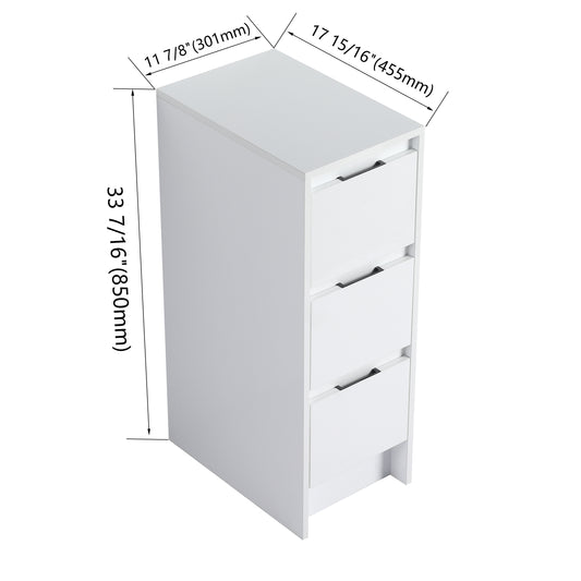 Allsumhome 12' Freestanding Bathroom Storage Cabinet, 3-Soft Close Drawer, Glossy White