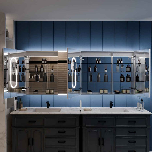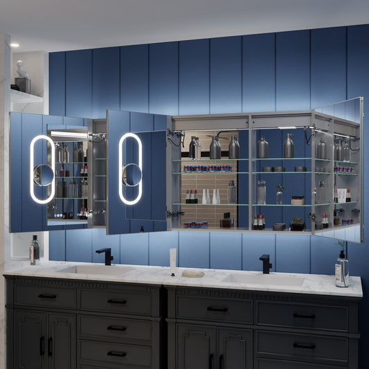 Illusion-B 90" x 36" Medicine Cabinets with LED Lights with Magnifiers Front and Back Light