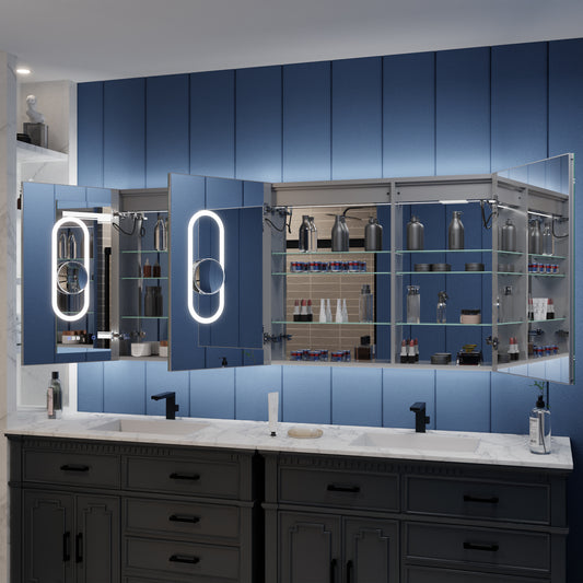 Illusion 92" x 32" Medicine Cabinet With LED Lighting with Magnifiers Front and Back Light
