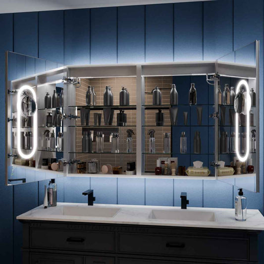 Illusion 60" x 32" Bathroom Medicine Cabinets With LED Lights with Magnifiers Front and Back Light